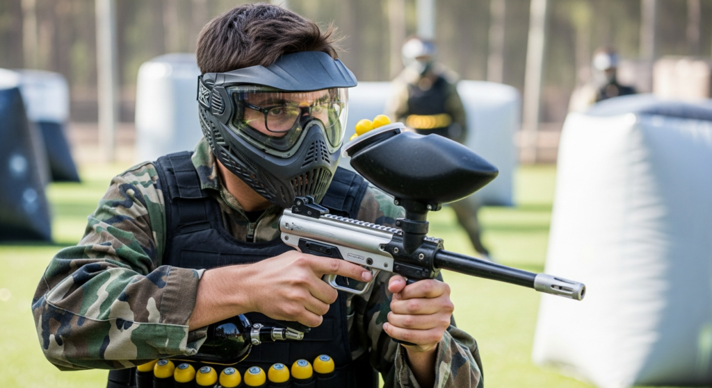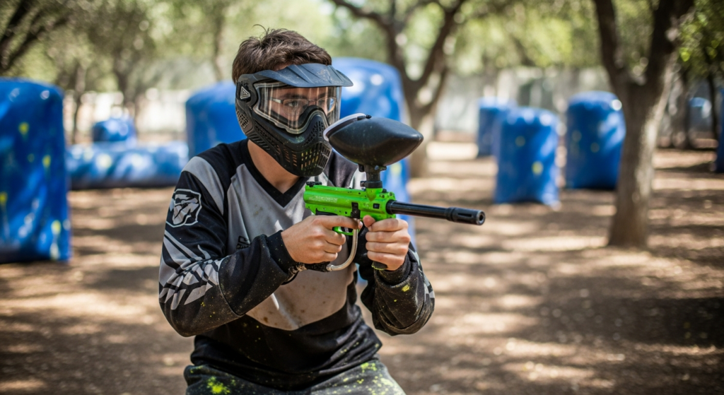 Gra w paintball z okularami pod maską